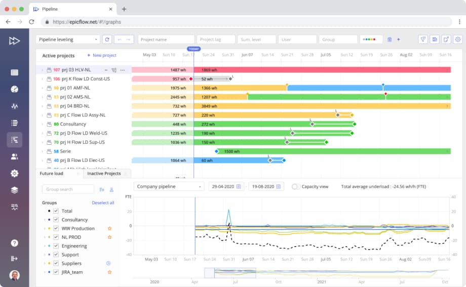 - Epicflow: Best for those companies with a high level of complexity in both their multi-project and resource management.