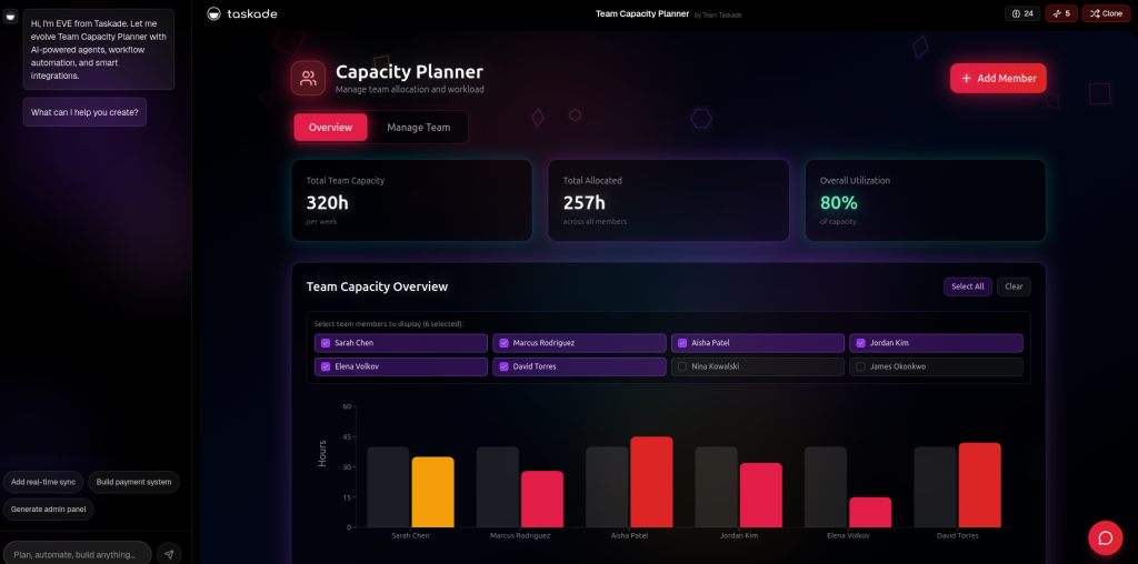 Taskade’s AI agents automate status updates, generate progress reports, and suggest optimal task assignments.