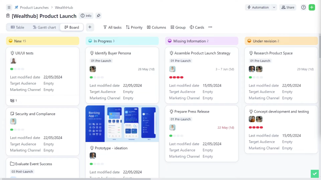 Wrike’s Kanban board interface is integrated with the Gantt chart and reporting functionalities in this application. As a result, it provides many levels of hierarchy to support project managers managing their teams and projects (portfolio) at every level of workflow.