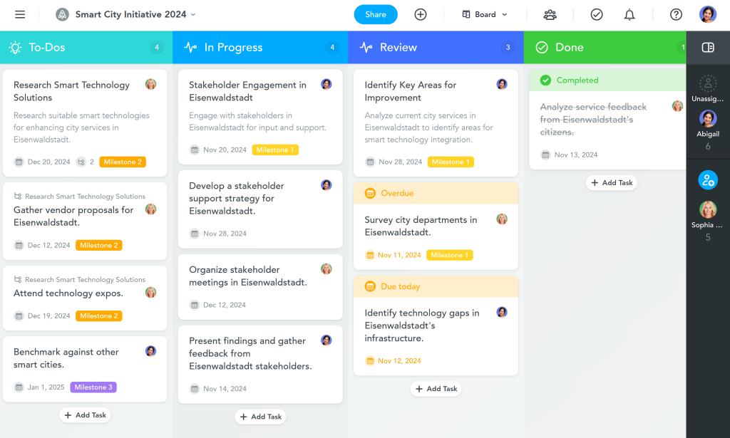 Today’s project management tools use automation in a way that saves time for users by automatically assigning tasks, moving cards based on status changes, and sending reminders. Hence, advanced Kanban tools utilize an AI orchestration capability and apply it to help users define potential risks and also recommend the best time to schedule tasks.